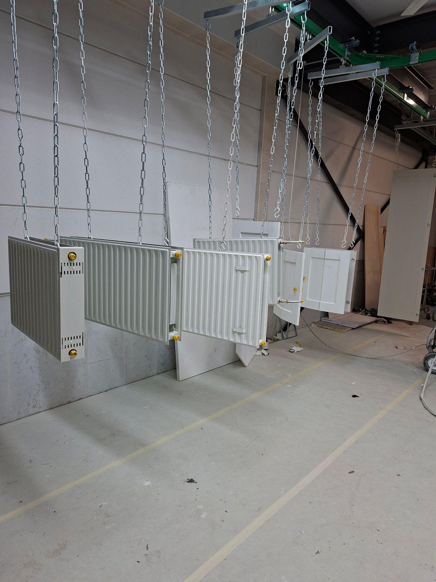 Radiatoren worden vaak met de jaren geel van kleur en vies. Deze klant koos ervoor om zijn radiatoren weer in een frisse kleur van deze tijd te spuiten en ze zijn weer als nieuw! Ook heb ik gelijk wat kastdeuren mee gespoten zodat het allemaal weer mooi aansluit. Heb bij deze opdracht een kleur van Labpaint gebruikt, dit zijn moderne kleuren deze tijd! Bent u ook benieuwd of radiatoren in een moderne kleur kunnen worden gespoten? Neem dan contact op met Woodpave voor de mogelijkheden!